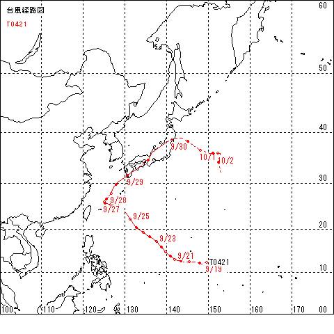 | 最大瞬間風速(S) | 45.4m/s | 9月7日16時31分 |